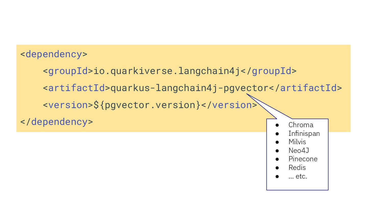5. Quarkus LangChain4j LangChain4j Quarkus LangChain4j Application LLMs Vector stores Embedding