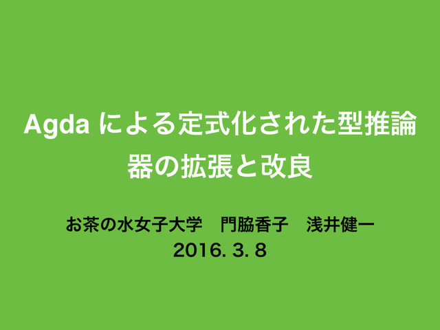 Agda ʹΑΔఆࣜԽ͞Εͨܕਪ ثͷ֦ுͱվྑ ͓ͷਫঁࢠେֶɹ߳ࢠɹઙҪ݈Ұ