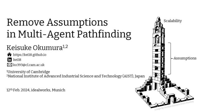 of Cambridge 2National Institute of Advanced Industrial Science and Technology (AIST), Japan kei18 https://kei18.github.io [email protected] Remove Assumptions in Multi-Agent Pathfinding Image by Gordon Johnson from Pixabay