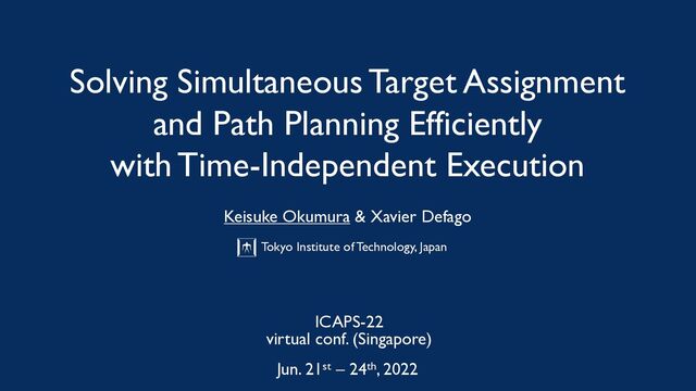 problem: 𝑂( 𝐴 ⋅ 𝑉 !) * polynomial-time makespan-optimal algorithm exists! [Yu&LaValle WAFR-13] computable but take time (≥1min) fast sub-optimal solver is attractive *assuming |𝐸| = 𝑂(|𝑉|) MAPF benchmarks [Stern+ SOCS-19] 418x530 43,151 257x256 28,178 194x194 14,784 |𝑉|