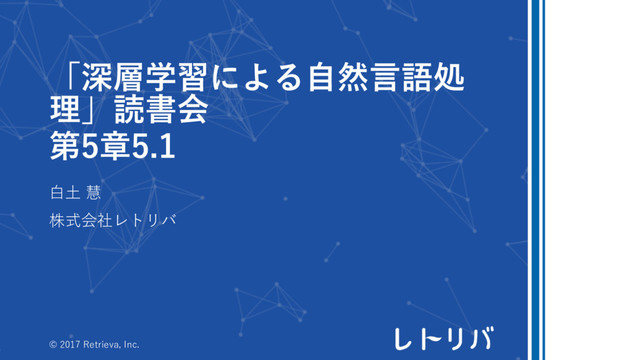 ʮਂֶशʹΑΔࣗવݴޠॲ ཧʯಡॻձ ୈষ ⽩⼟ 慧 株式会社レトリバ © 2017 Retrieva, Inc.