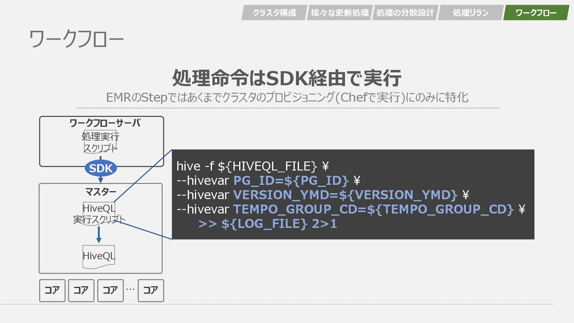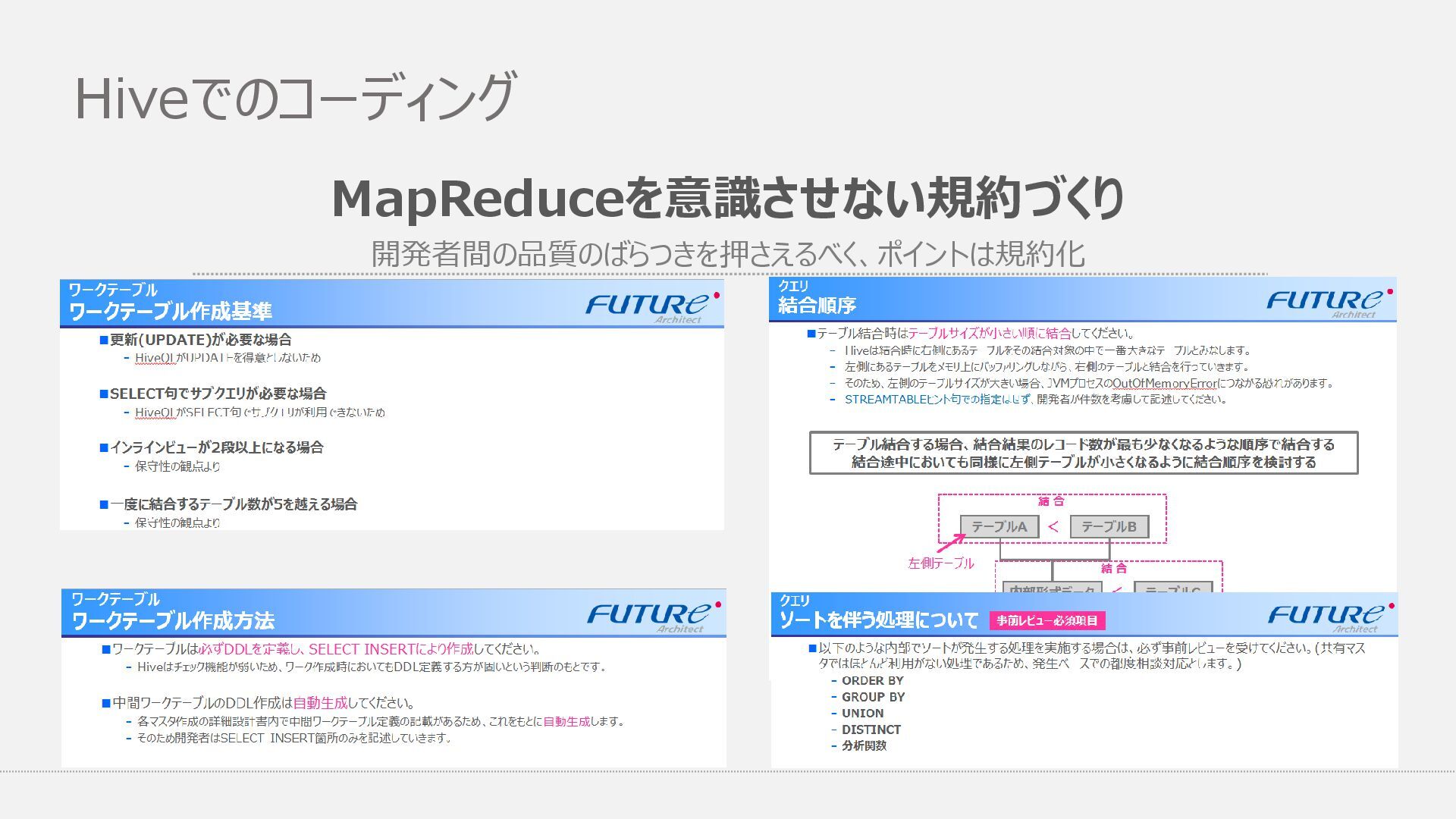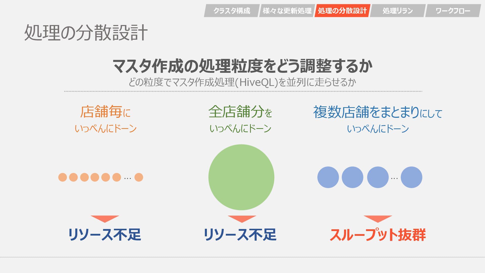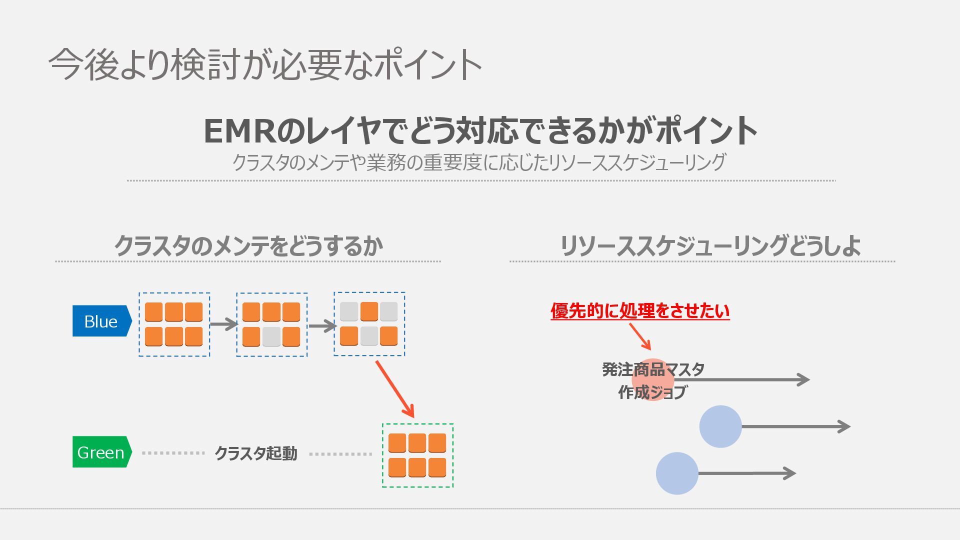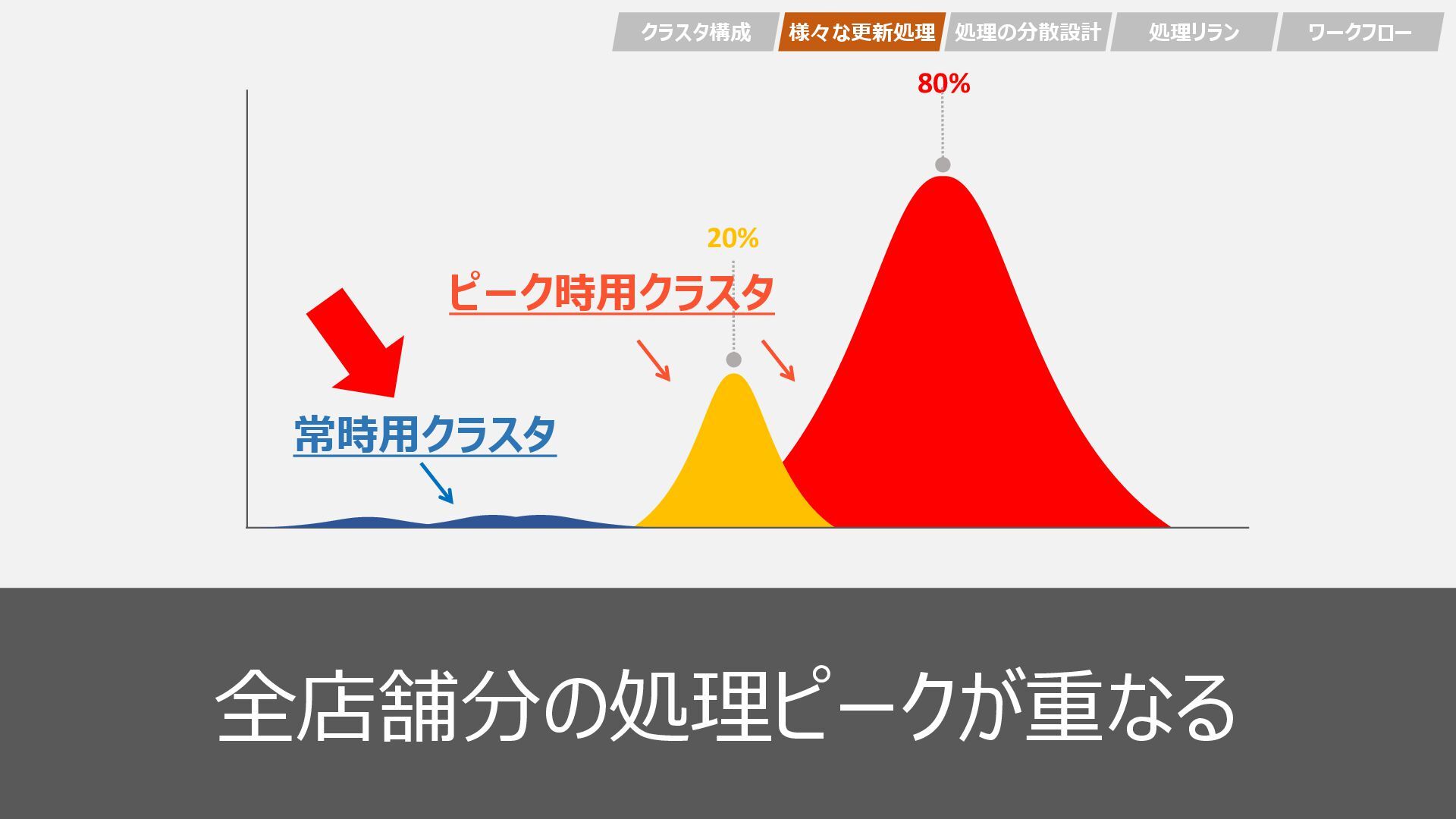 発注 端末 発注 端末 発注 端末 発注 端末 発注 端末 発注 端末 API API API API API API API 全店舗分の発注業務に利用する マスタデータをバッチ処理(日次)で作成 全業務マスタDBから店舗毎に必要な マスタデータの更新差分をファイルで連携 これまで店舗毎に配信されていた 全店舗分の更新差分ファイルを連携 受信用DB 公開用DB 1. 全業務マスタDBから各店舗へ更新差分ファイルを配信 2. 店舗毎にDBへ差分反映後、発注利用マスタデータを作成 3. 作成されたマスタデータは発注業務時に発注端末から参照 1. 全業務マスタDBから全店舗分の更新差分ファイルを配信 2. 受信用DBへ差分反映後、全店舗分の発注利用マスタデータを作成 3. 作成されたマスタデータはREST APIで公開し、発注端末より参照 データ参照 発注業務 Before After