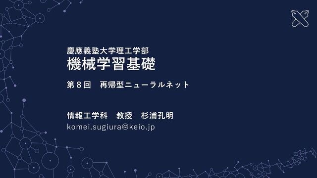 慶應義塾大学理工学部 機械学習基礎 第8回 再帰型ニューラルネット