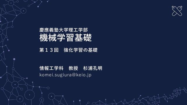 慶應義塾大学 機械学習基礎13 強化学習の基礎