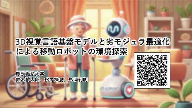 3D視覚⾔語基盤モデルと劣モジュラ最適化 による移動ロボットの環境探索 慶應義塾⼤学 鈴⽊駿太郎,松尾榛夏,杉浦孔明