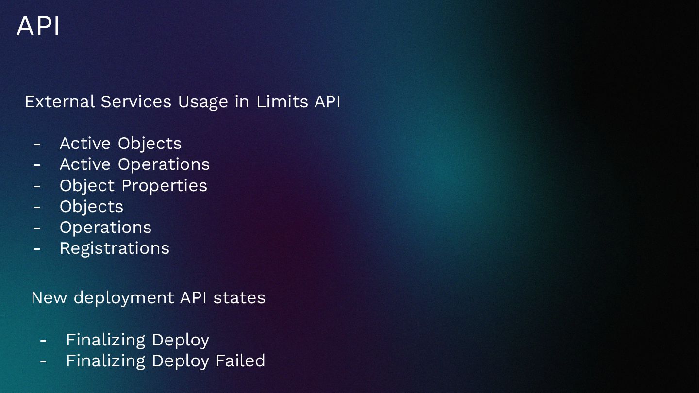 Failed API External Services Usage in Limits API - Active Objects - Active Operations - Object Properties - Objects - Operations - Registrations