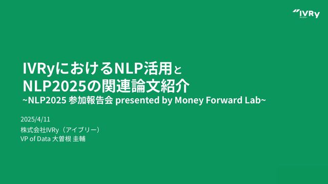 IVRyにおけるNLP活⽤と NLP2025の関連論⽂紹介 ~NLP2025 参加報告会 presented by Money Forward Lab~ 株式会社IVRy(アイブリー)