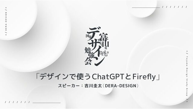 テキストによる指示で数秒 ほどの動画を生成 代表例:Gen-2 画像生成 テキストによる指示でオリ ジナル画像を生成 代表例:Stable Diffusion 音声生成 音声またはテキスト入力で 新たな音声を生成 代表例:Voicebox D E R A - D E S I G N T o y a m a D e s i g n S t u d y G r o u p