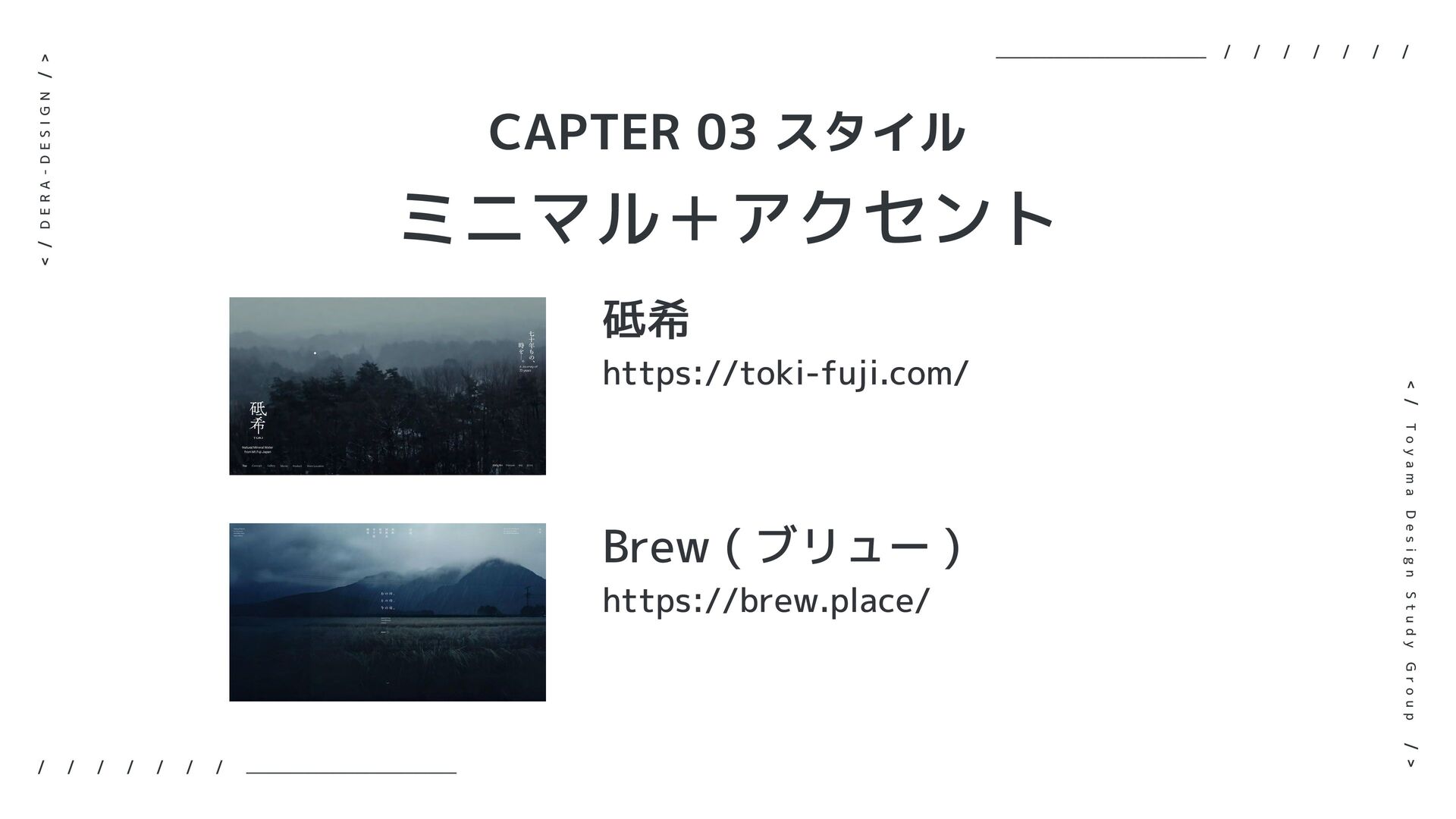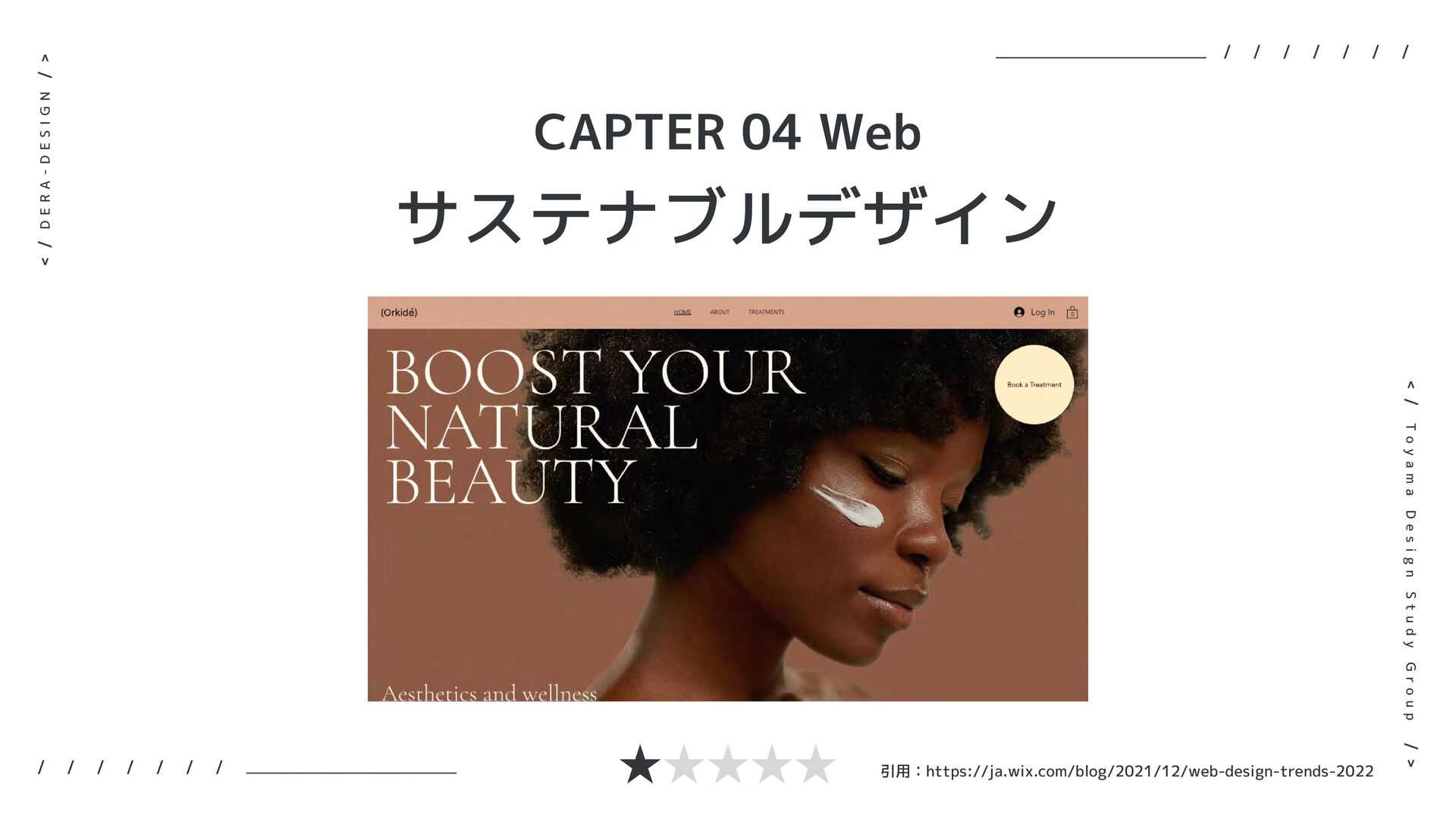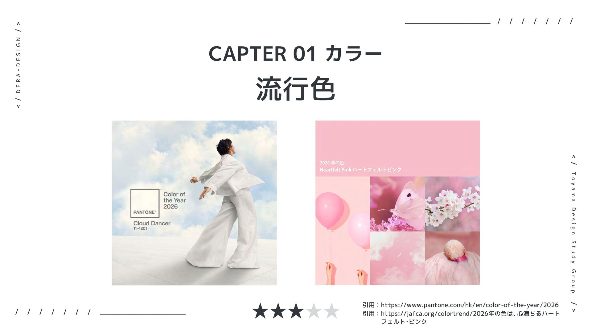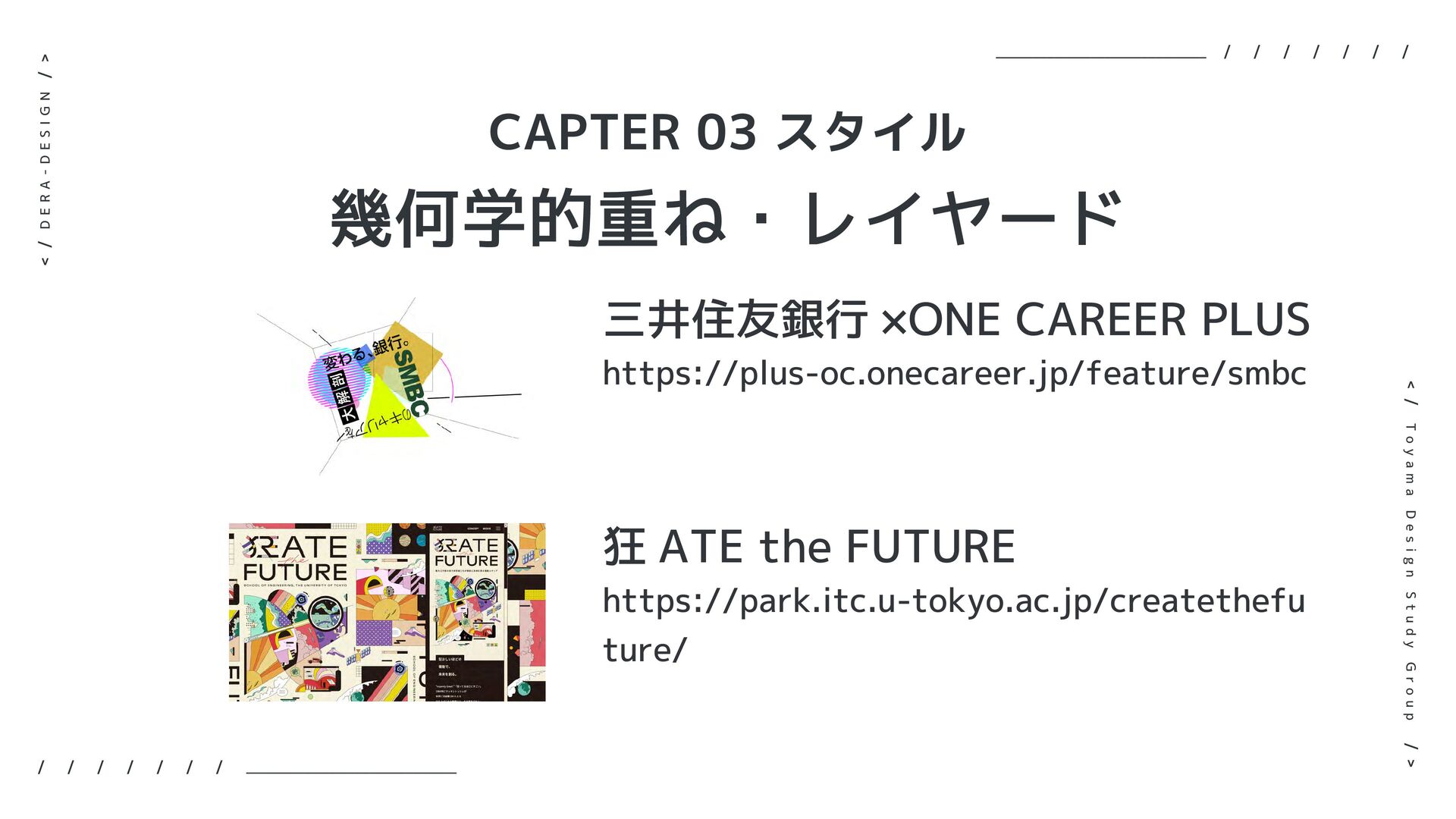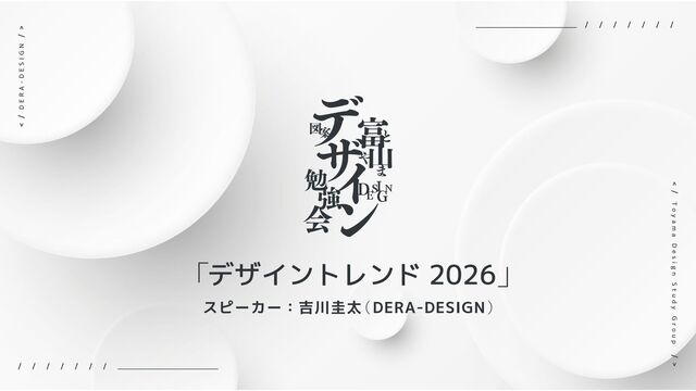 • 2026 年に流行る Web デザイントレンド 14 選|デザイナー監修 https://ja.wix.com/blog/2021/12/web-design-trends-2022 • 先取り! 2026 年グラフィックデザイントレンド最前線! https:/ /tsubakiya-design.com/2026-visual-expression-trends-for-designers/ • 【2026年版】 流行るWebデザインはこれだ! アクセスを爆増させるトレンドとNG例 https://www.bscre8.com/journal/2026/01/13/ms20260108/ • 2026 年の幕開け 参考紹介・出典 D E R A - D E S I G N T o y a m a D e s i g n S t u d y G r o u p