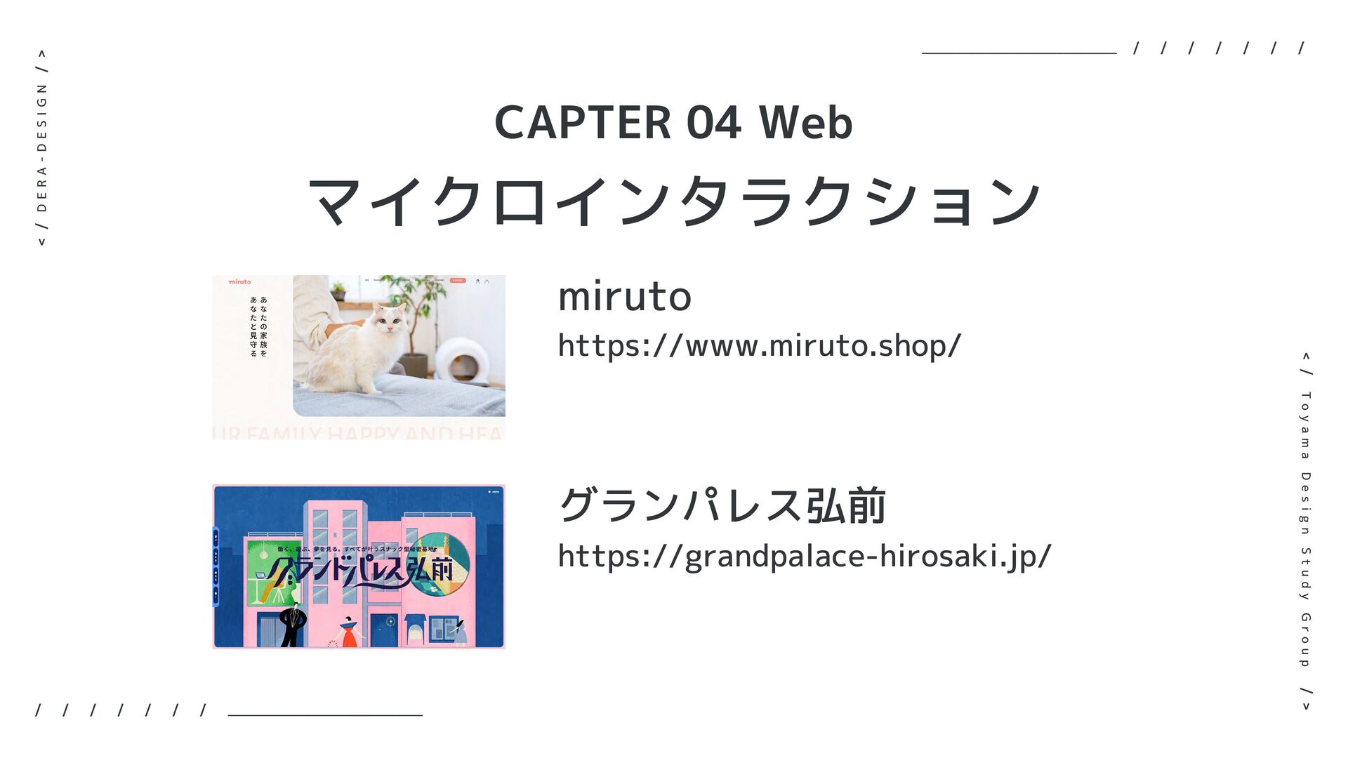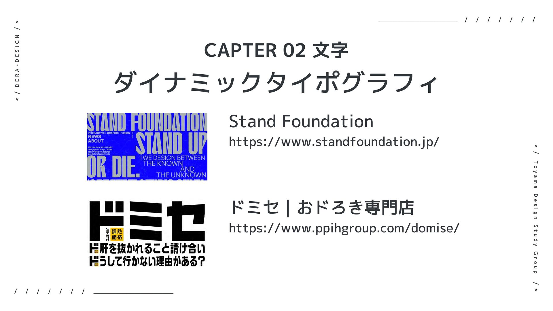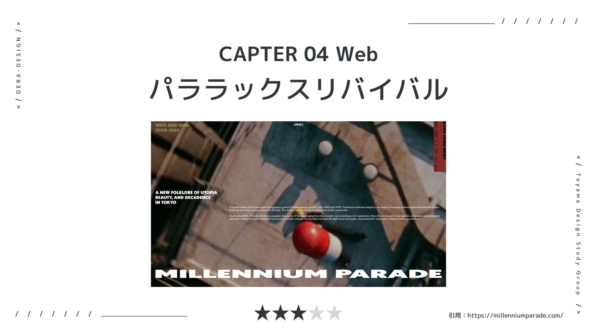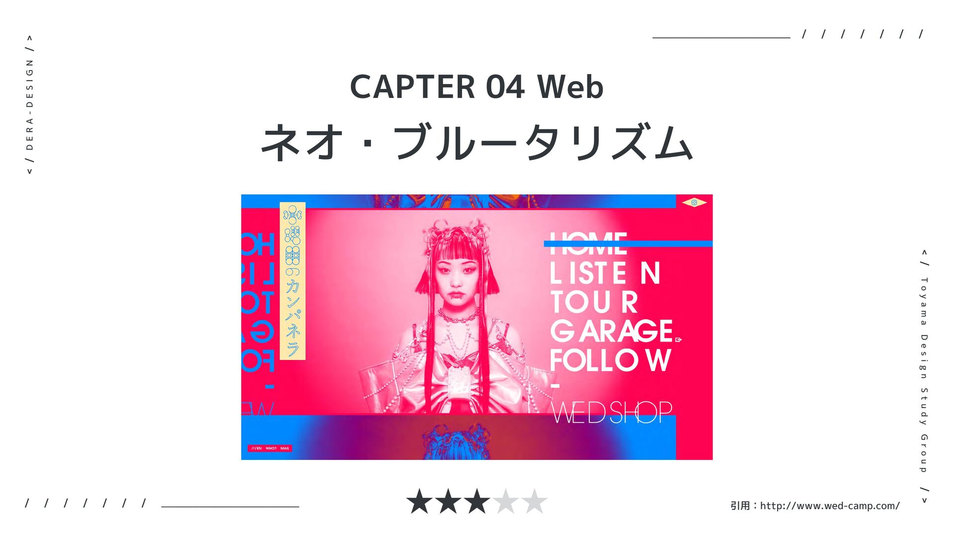 • 2026 年に流行る Web デザイントレンド 14 選|デザイナー監修 https://ja.wix.com/blog/2021/12/web-design-trends-2022 • 先取り! 2026 年グラフィックデザイントレンド最前線! https:/ /tsubakiya-design.com/2026-visual-expression-trends-for-designers/ • 【2026年版】 流行るWebデザインはこれだ! アクセスを爆増させるトレンドとNG例 https://www.bscre8.com/journal/2026/01/13/ms20260108/ • 2026 年の幕開け 参考紹介・出典 D E R A - D E S I G N T o y a m a D e s i g n S t u d y G r o u p