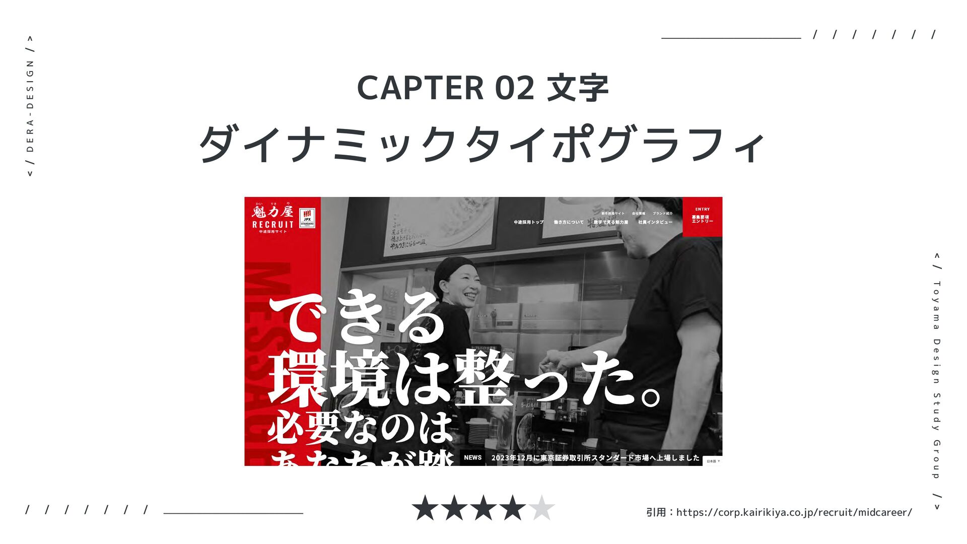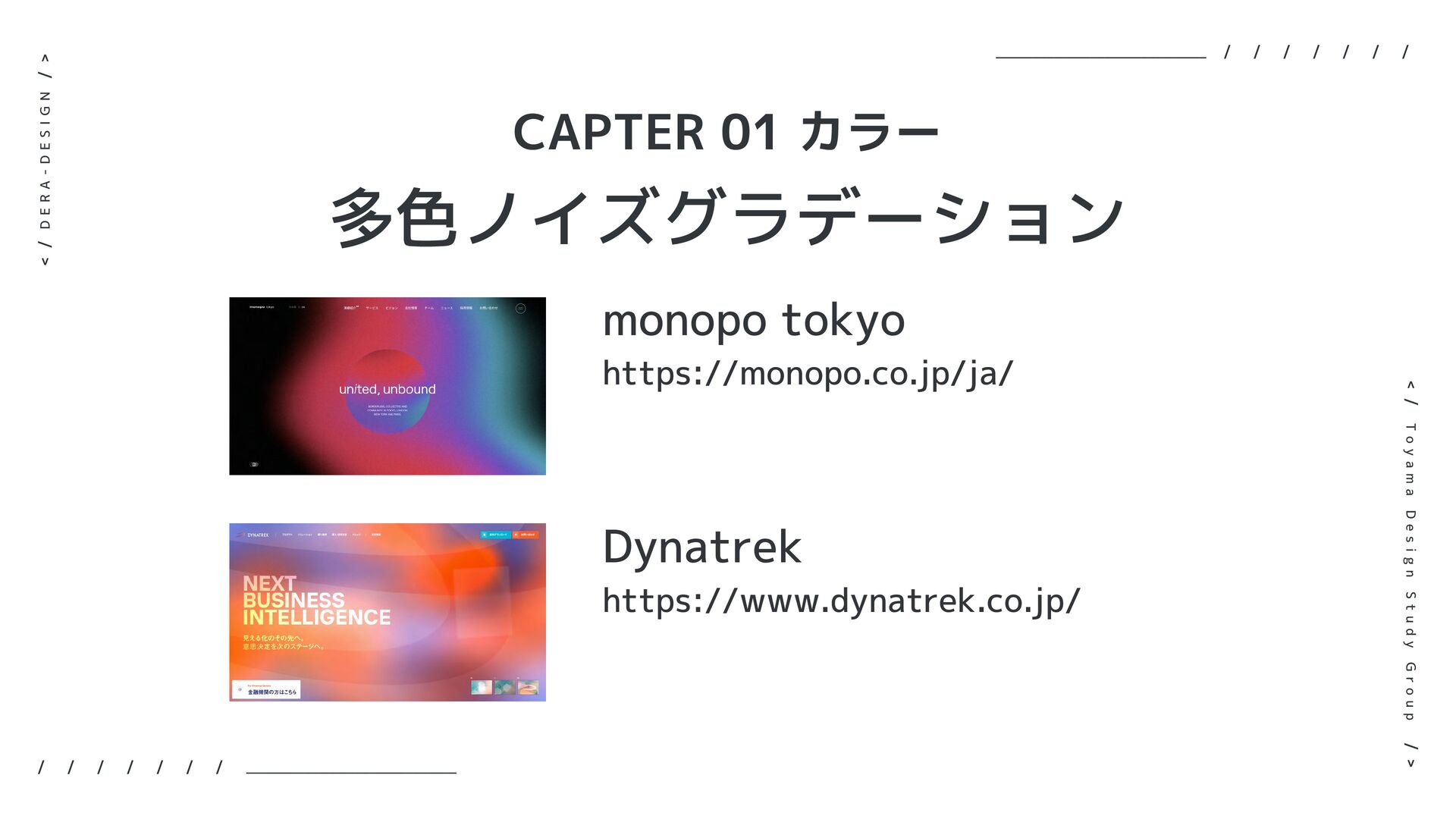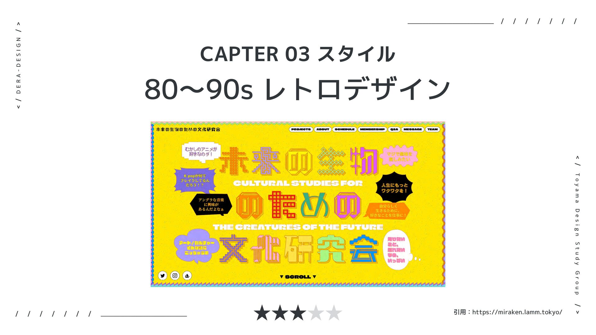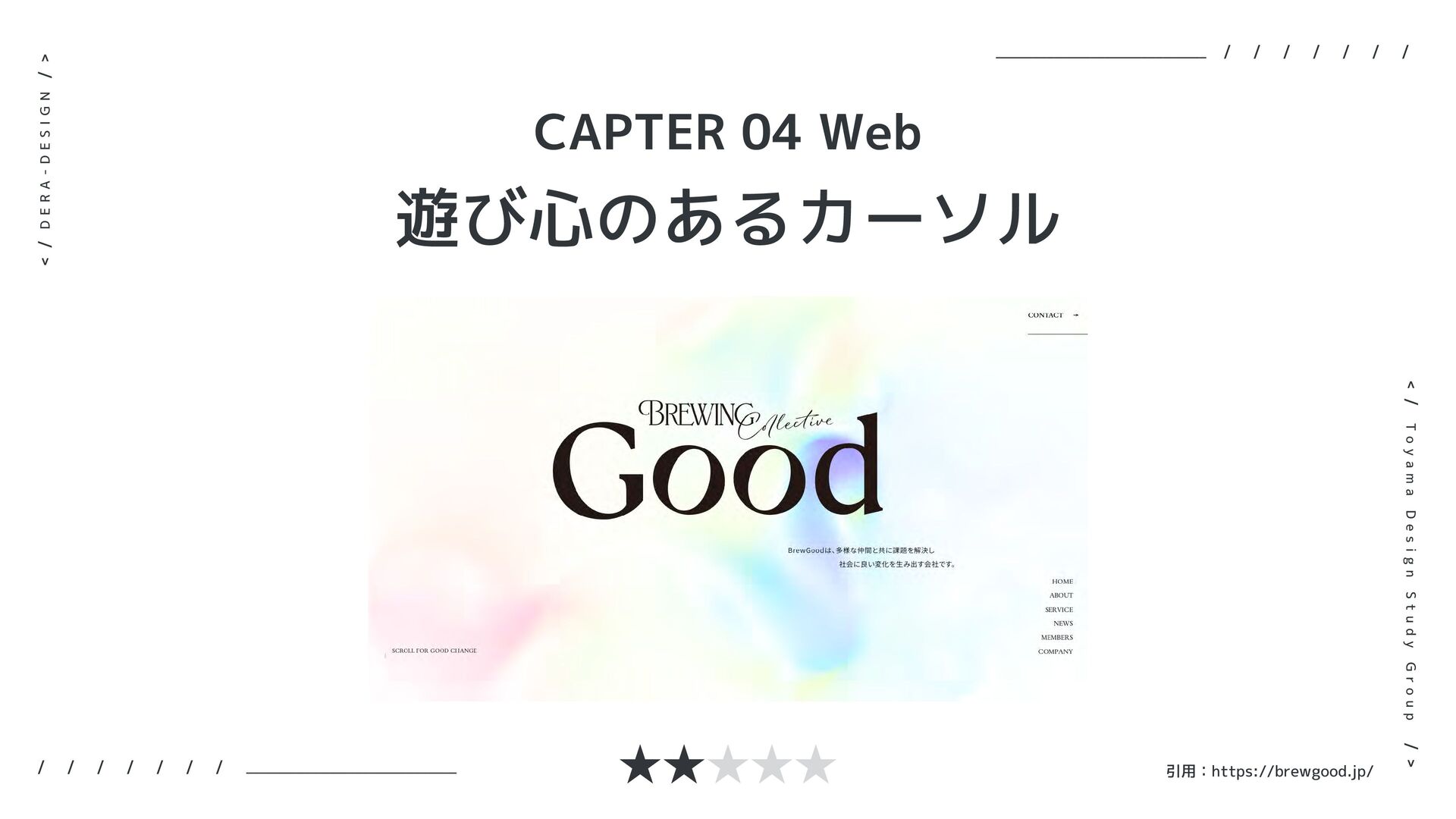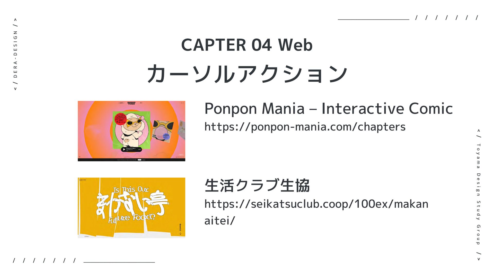 • 2026 年に流行る Web デザイントレンド 14 選|デザイナー監修 https://ja.wix.com/blog/2021/12/web-design-trends-2022 • 先取り! 2026 年グラフィックデザイントレンド最前線! https:/ /tsubakiya-design.com/2026-visual-expression-trends-for-designers/ • 【2026年版】 流行るWebデザインはこれだ! アクセスを爆増させるトレンドとNG例 https://www.bscre8.com/journal/2026/01/13/ms20260108/ • 2026 年の幕開け 参考紹介・出典 D E R A - D E S I G N T o y a m a D e s i g n S t u d y G r o u p