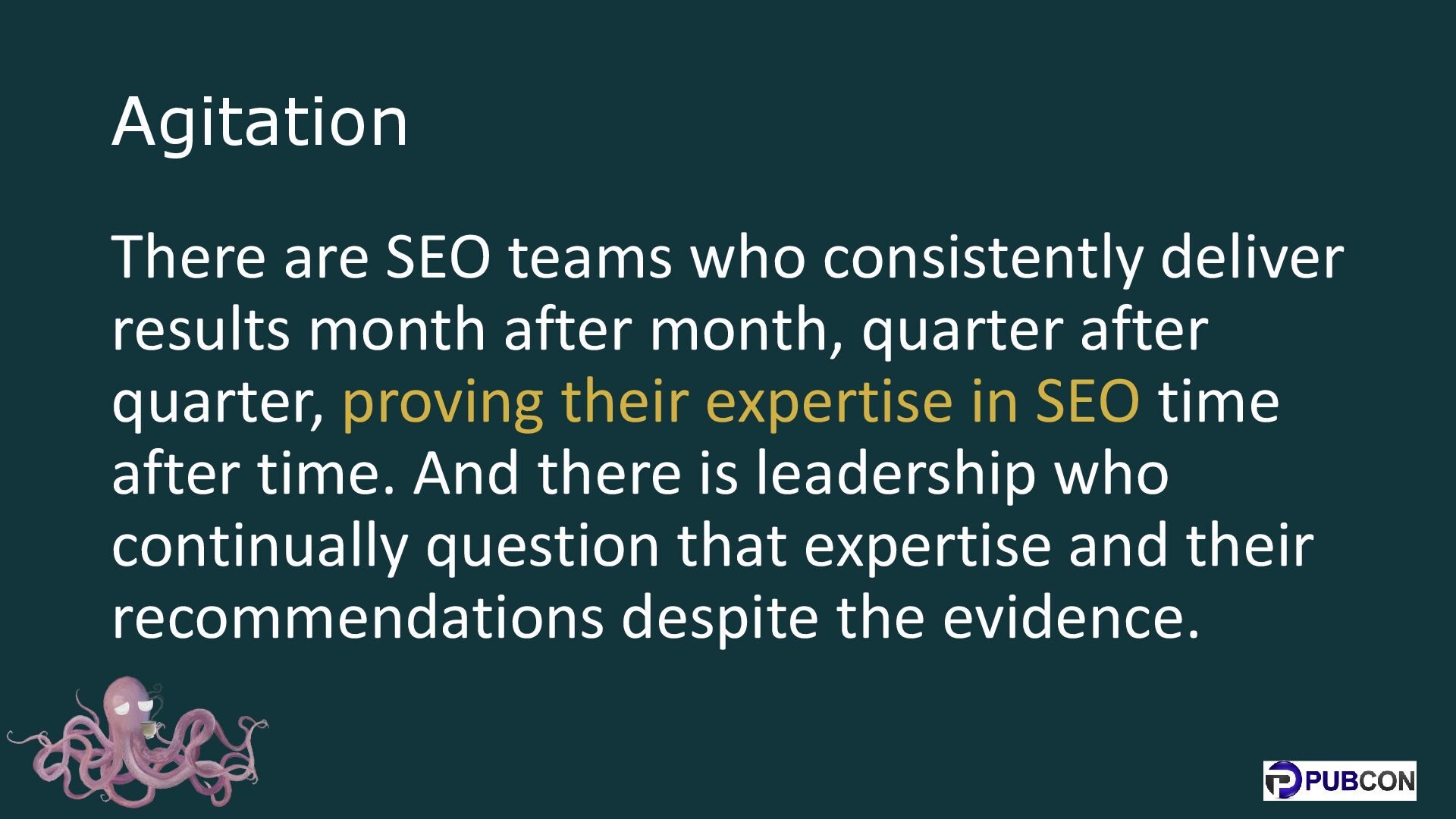 after month, quarter after quarter, proving their expertise in SEO time after time. And there is leadership who continually question that expertise and their recommendations despite the evidence.