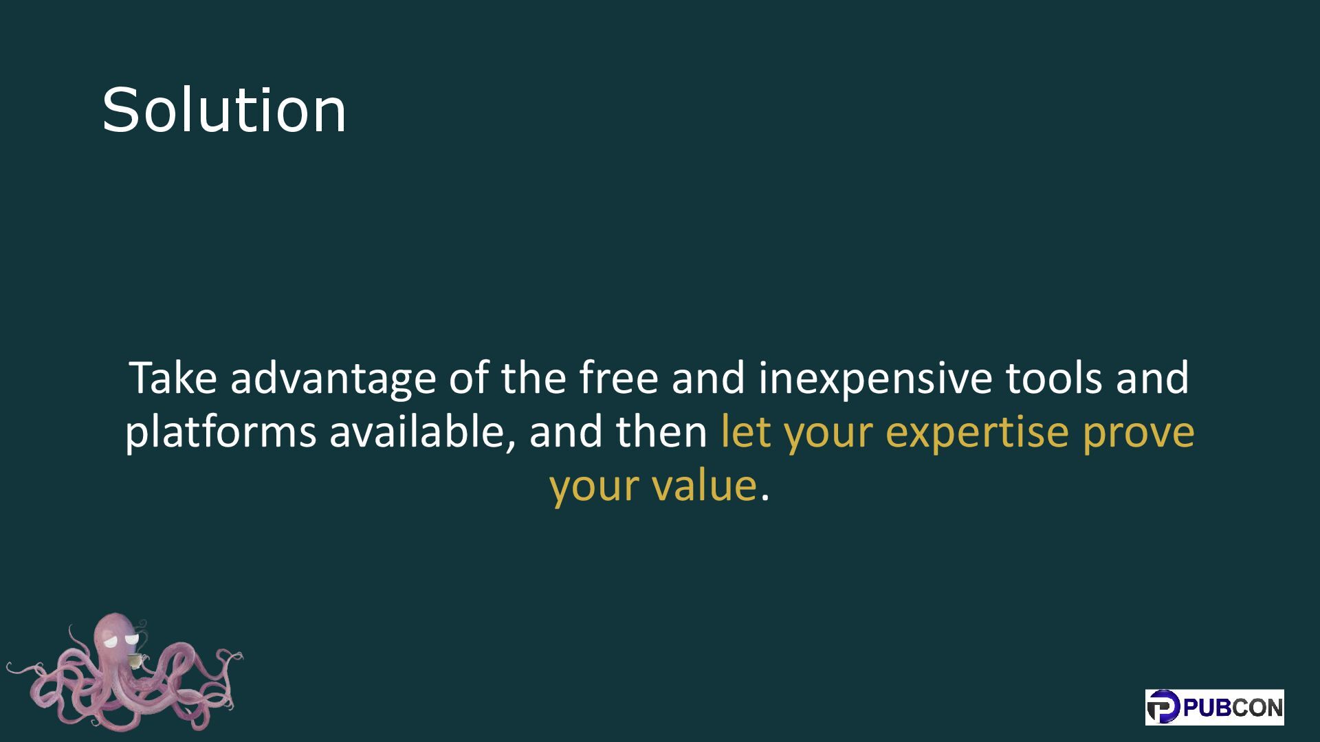 11. Solution Take advantage of the free and inexpensive tools and