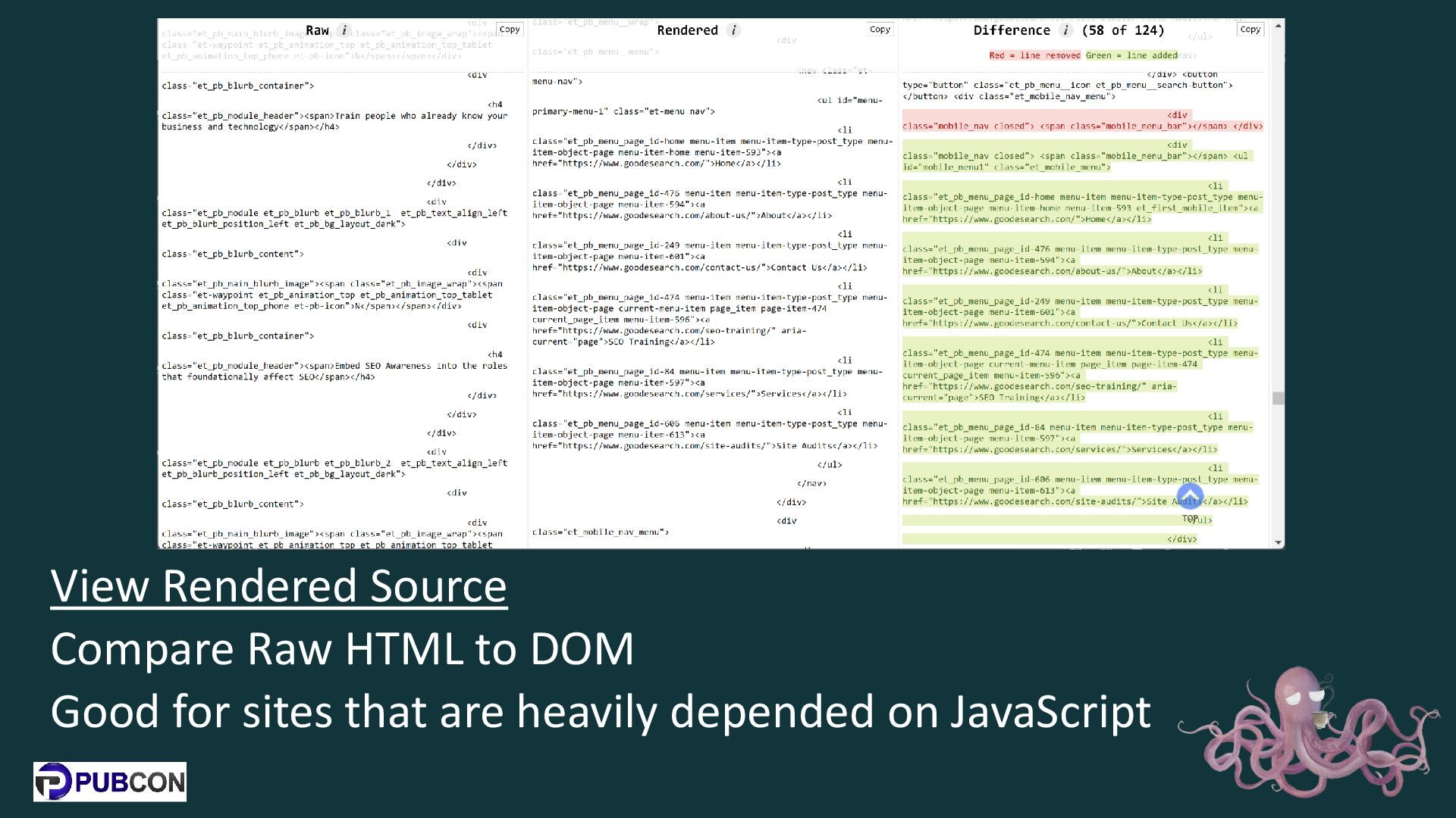 19. View Rendered Source Compare Raw HTML to DOM Good for