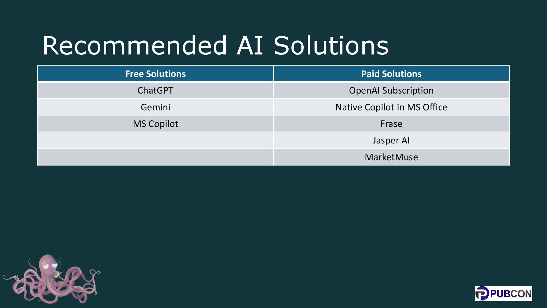 27. Recommended AI Solutions Free Solutions Paid Solutions ChatGPT OpenAI Subscription