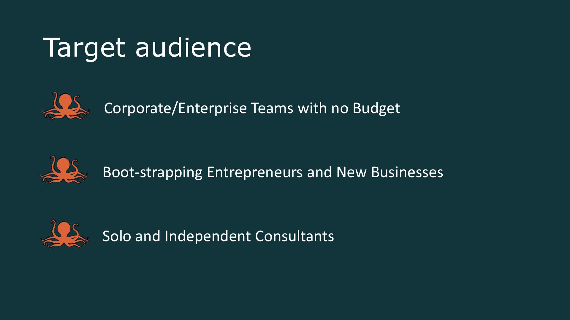 5. Target audience Corporate/Enterprise Teams with no Budget Solo and Independent