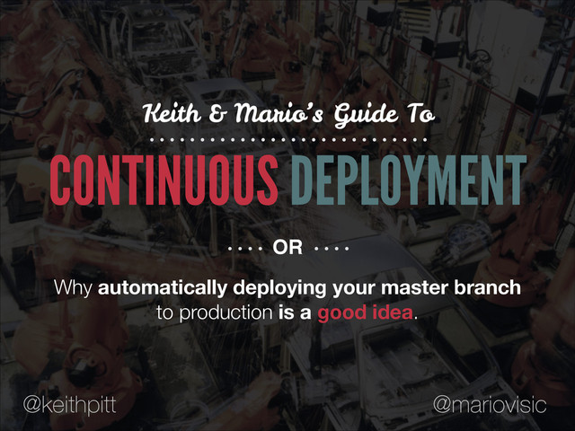 In our talk Mario and I will discussed how we used continuous deployment to push these practises to the extreme. Automatically deploying the master branch on new changes is an awesome way to improve your development process.