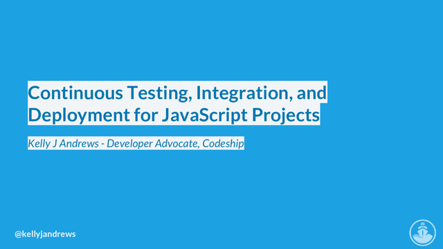 @kellyjandrews Continuous Testing, Integration, and Deployment for JavaScript Projects Kelly