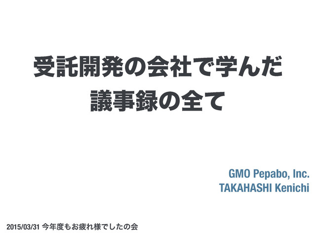 GMO Pepabo, Inc. TAKAHASHI Kenichi 2015/03/31 ࠓ͓ർΕ༷Ͱͨ͠ͷձ डୗ։ൃͷձࣾͰֶΜͩ ٞࣄͷશͯ