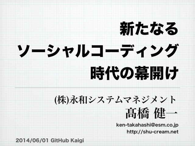 ג ӬγεςϜϚωδϝϯτ ∁ڮ݈Ұ LFOUBLBIBTIJ!FTNDPKQ IUUQTIVDSFBNOFU (JU)VC,BJHJ ৽ͨͳΔ ιʔγϟϧίʔσΟϯά ࣌ͷນ։͚