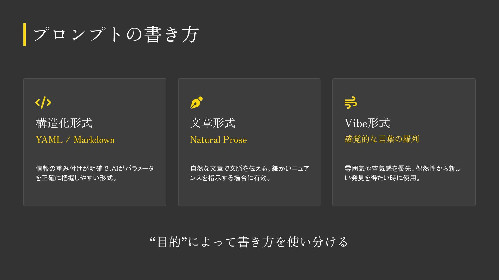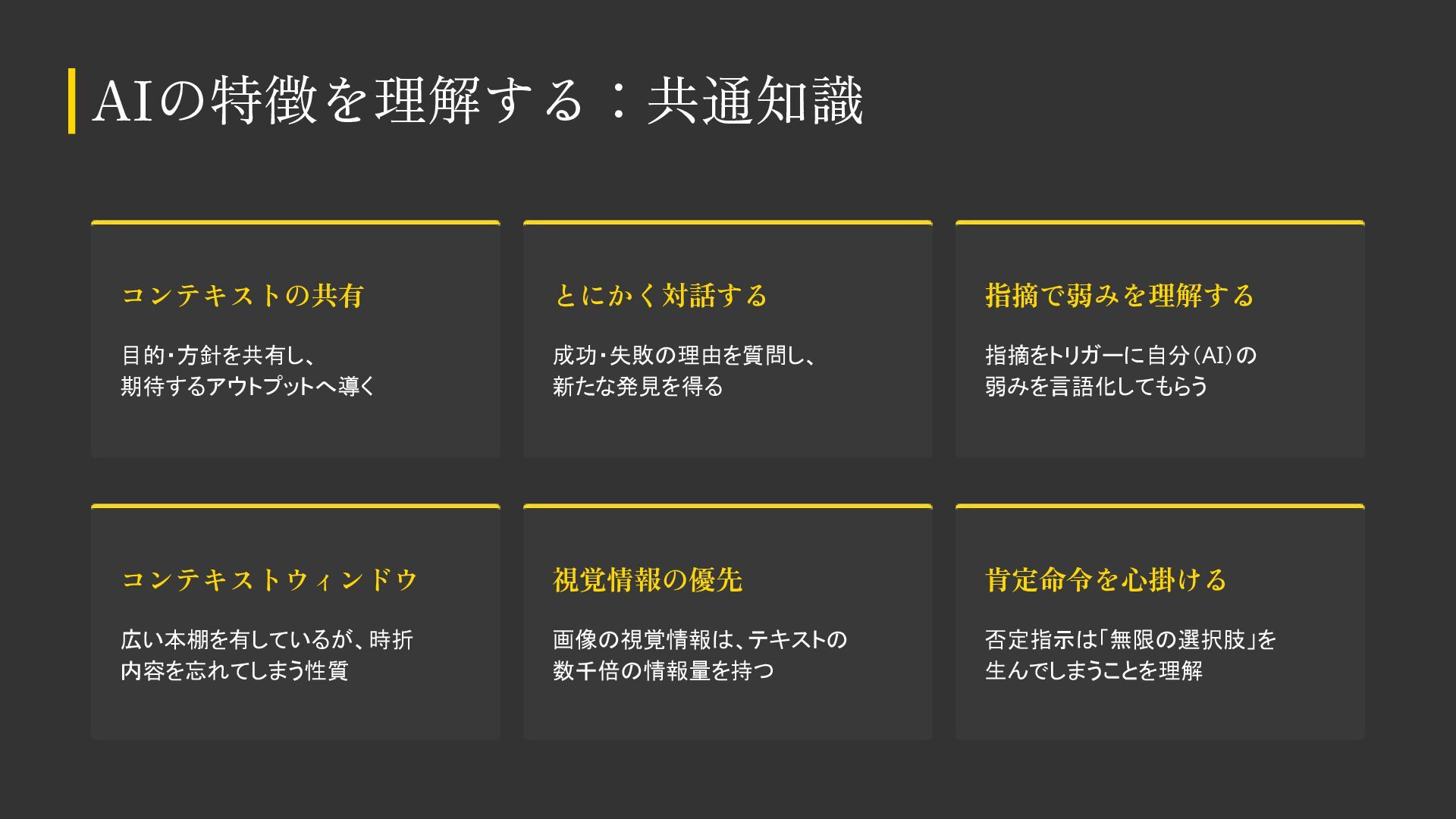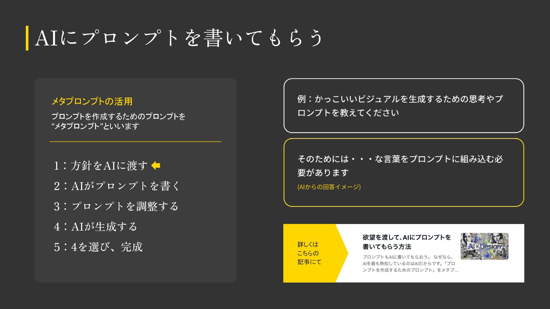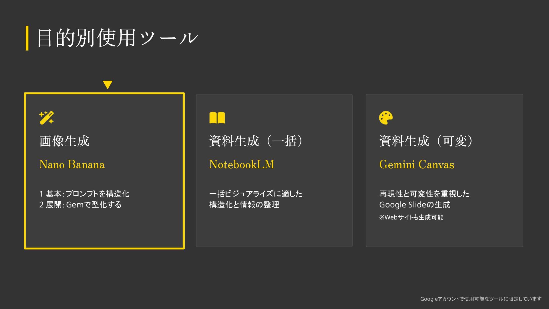 AIをデザイン制作で活用する際の基本知識・考え方をまとめました。 デザイナーの方も、デザイナー以外の方もご覧いただける内容になっています。 ※こちらのスライドは「Gemini Canvas」で生成しました。