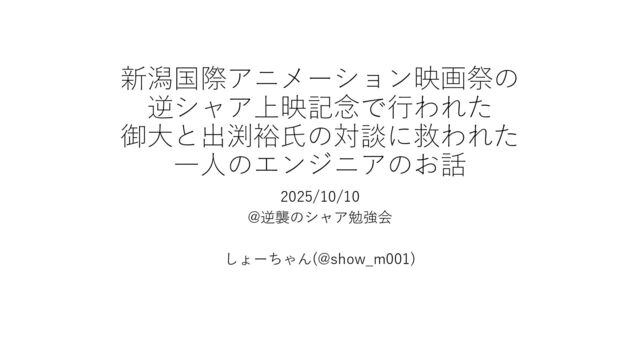 2025年10月10日に金沢で行われた「逆襲のシャア勉強会 #4 in 金沢 (+ オンライン)」でのLT資料です。