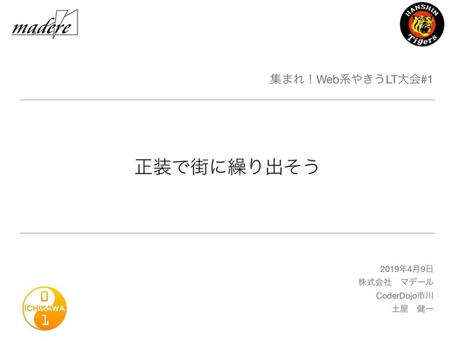ਖ਼Ͱ֗ʹ܁Γग़ͦ͏ 20194݄9 גࣜձࣾɹϚσʔϧ CoderDojoࢢ ɹ݈Ұ ɹू·ΕʂWebܥ͖͏LTେձ#1