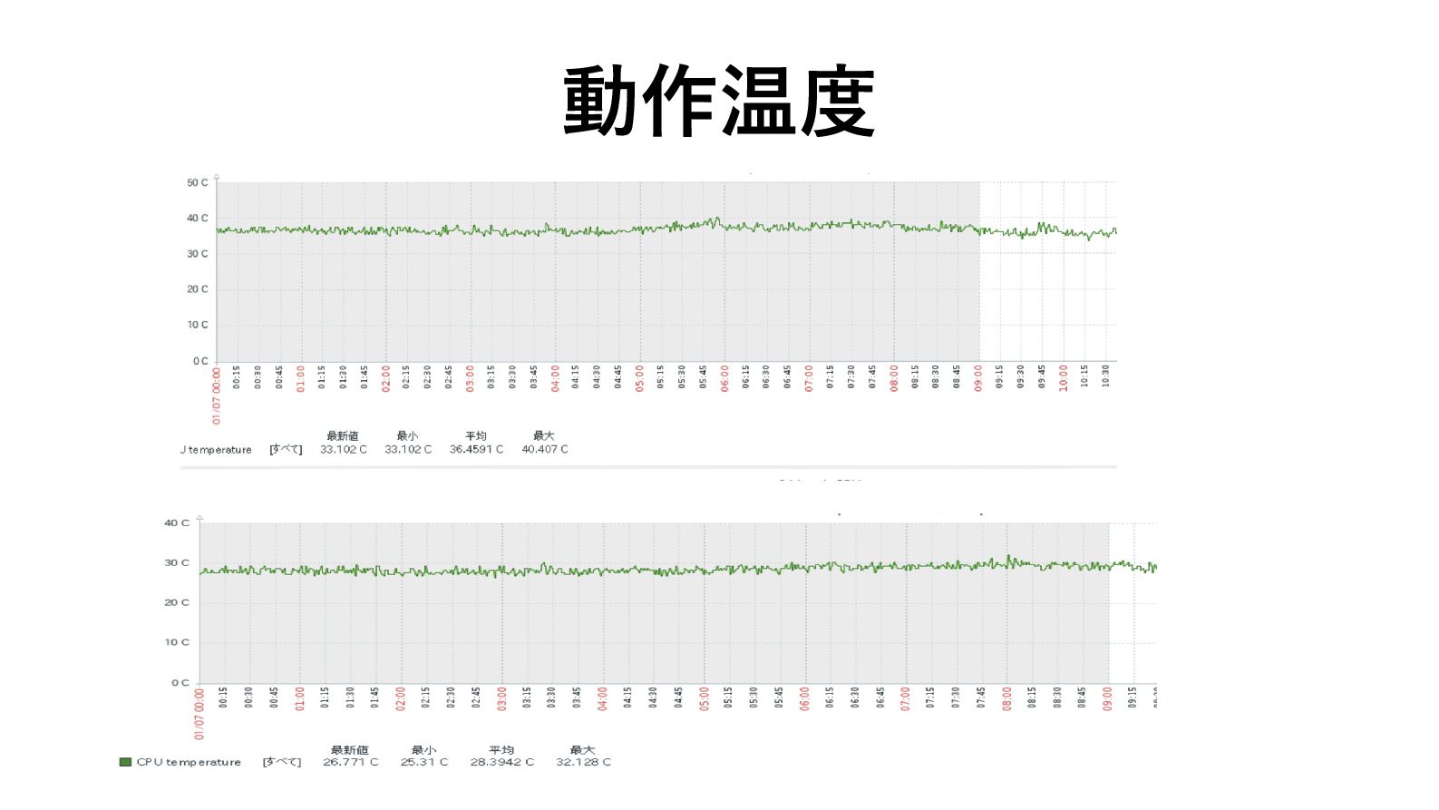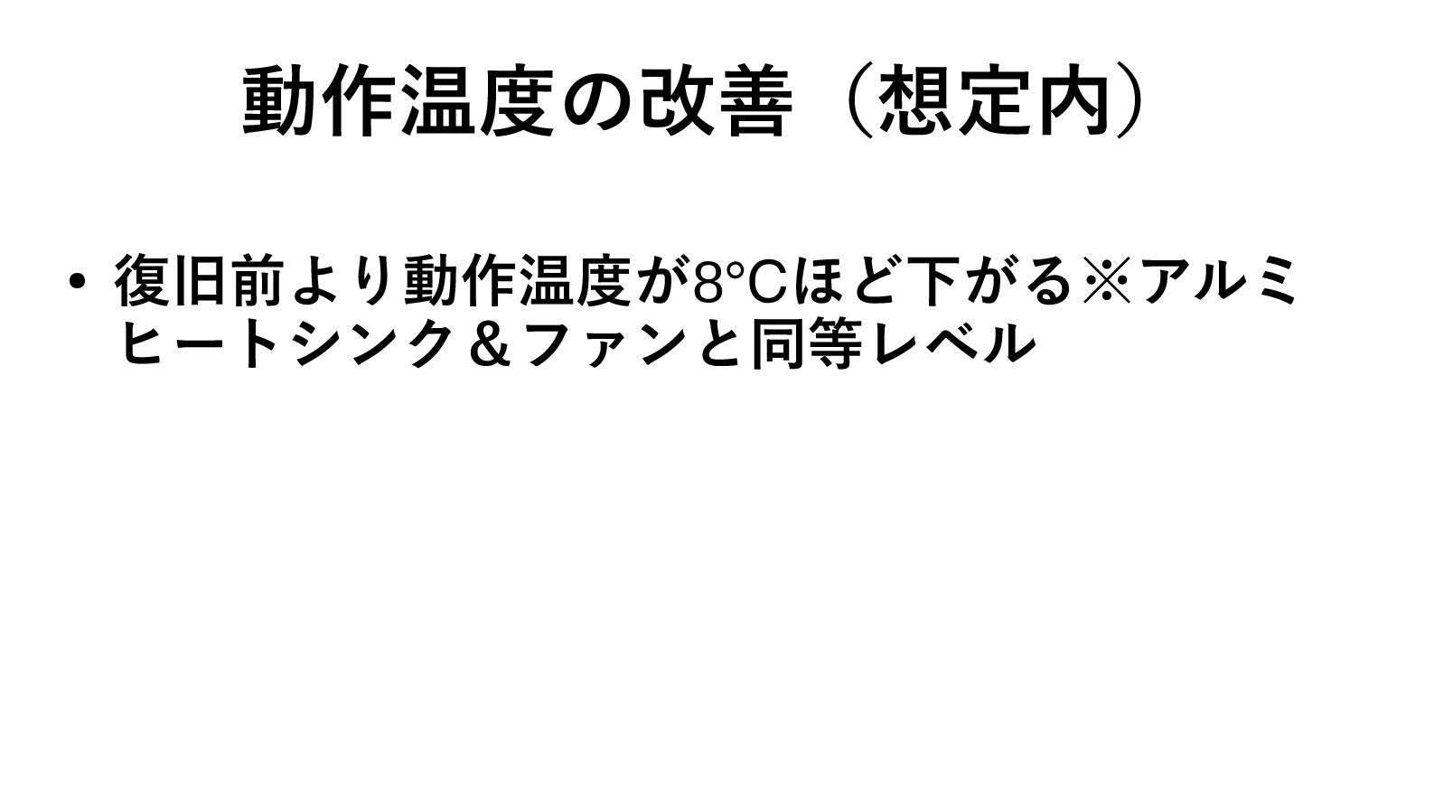 動作温度の改善(想定内) • 復旧前より動作温度が8℃ほど下がる※アルミ ヒートシンク&ファンと同等レベル