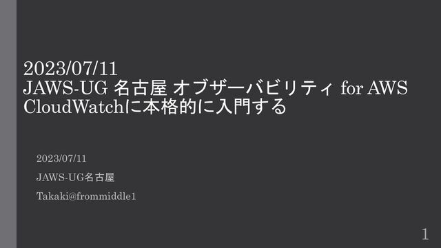 2023/07/11 JAWS-UG 名古屋 オブザーバビリティ for AWS CloudWatchに本格的に入門する 2023/07/11 JAWS-UG名古屋 Takaki@frommiddle1