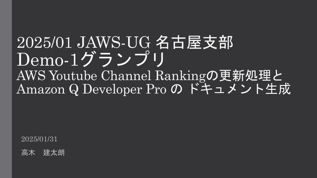 2025/01 JAWS-UG 名古屋支部 Demo-1グランプリ AWS Youtube Channel Rankingの更新処理と Amazon Q