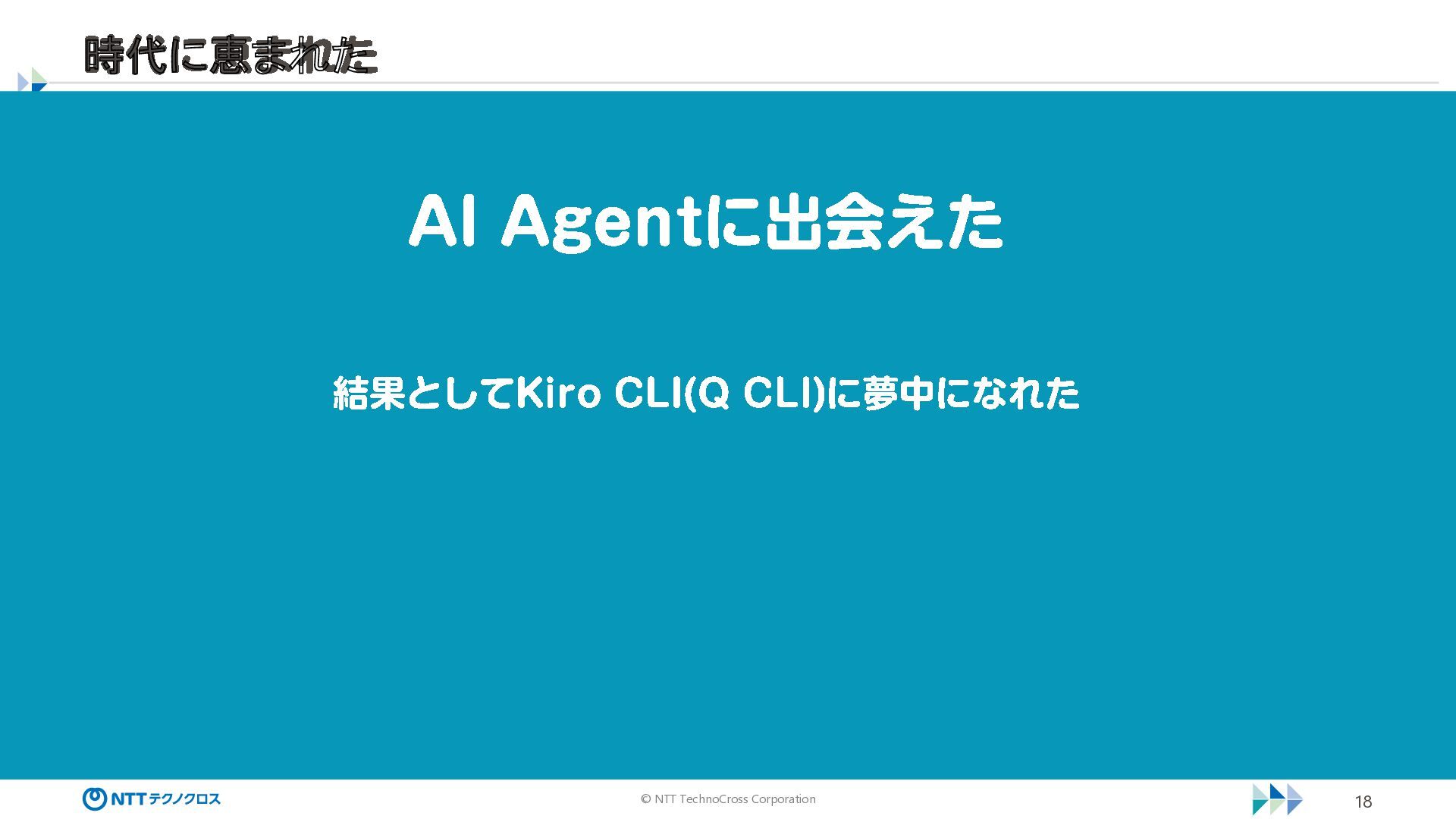 © NTT TechnoCross Corporation 18 AI Agent に出会えた 結果として Kiro