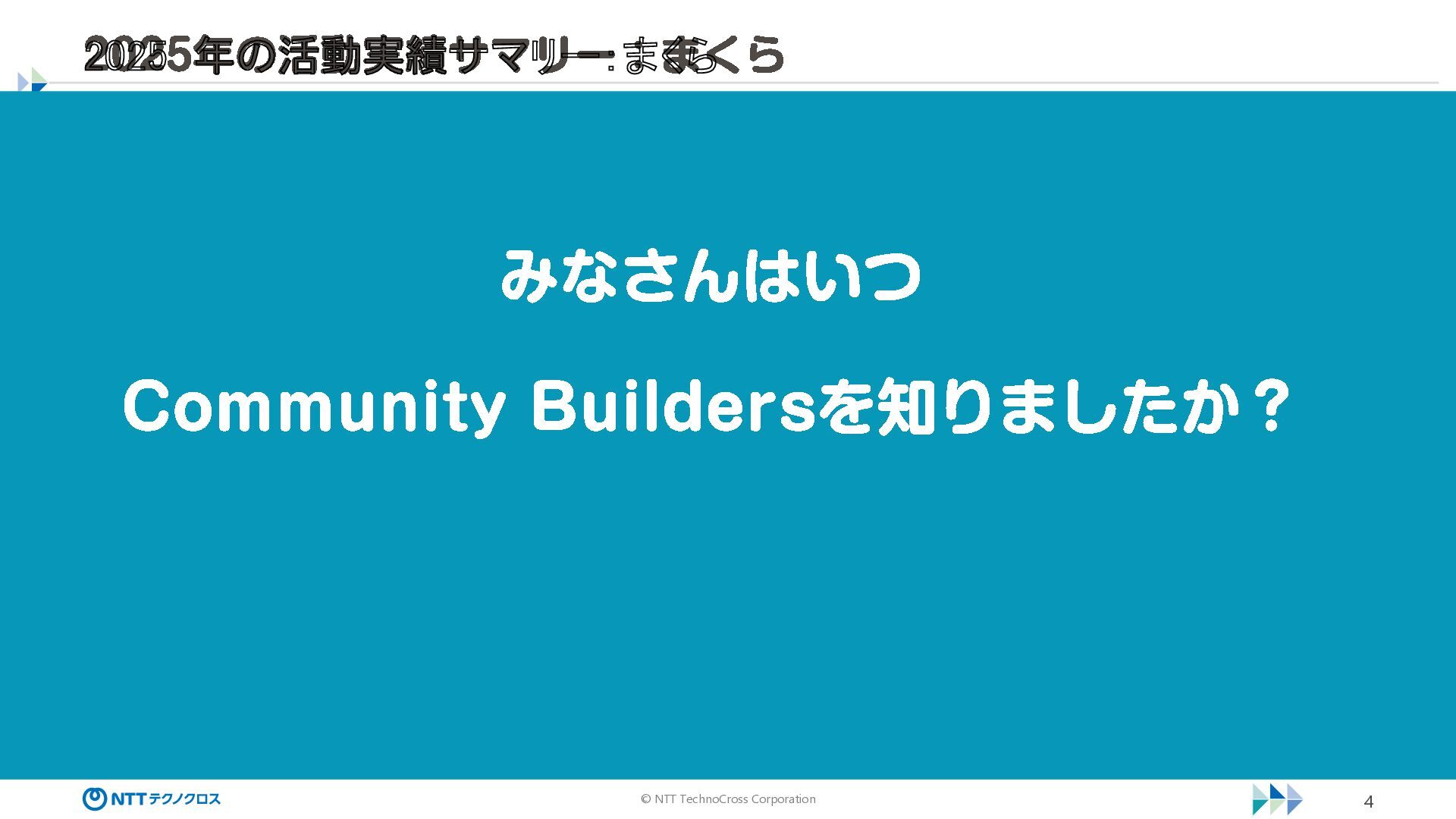 © NTT TechnoCross Corporation 4 みなさんはいつ Community Builders を知りましたか? 2025