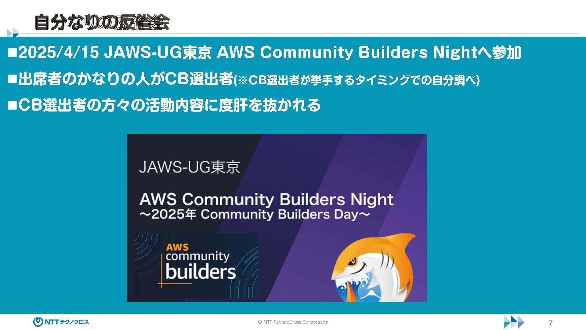 © NTT TechnoCross Corporation 7 自分なりの反省会 ◼2025 /4/15 JAWS -UG