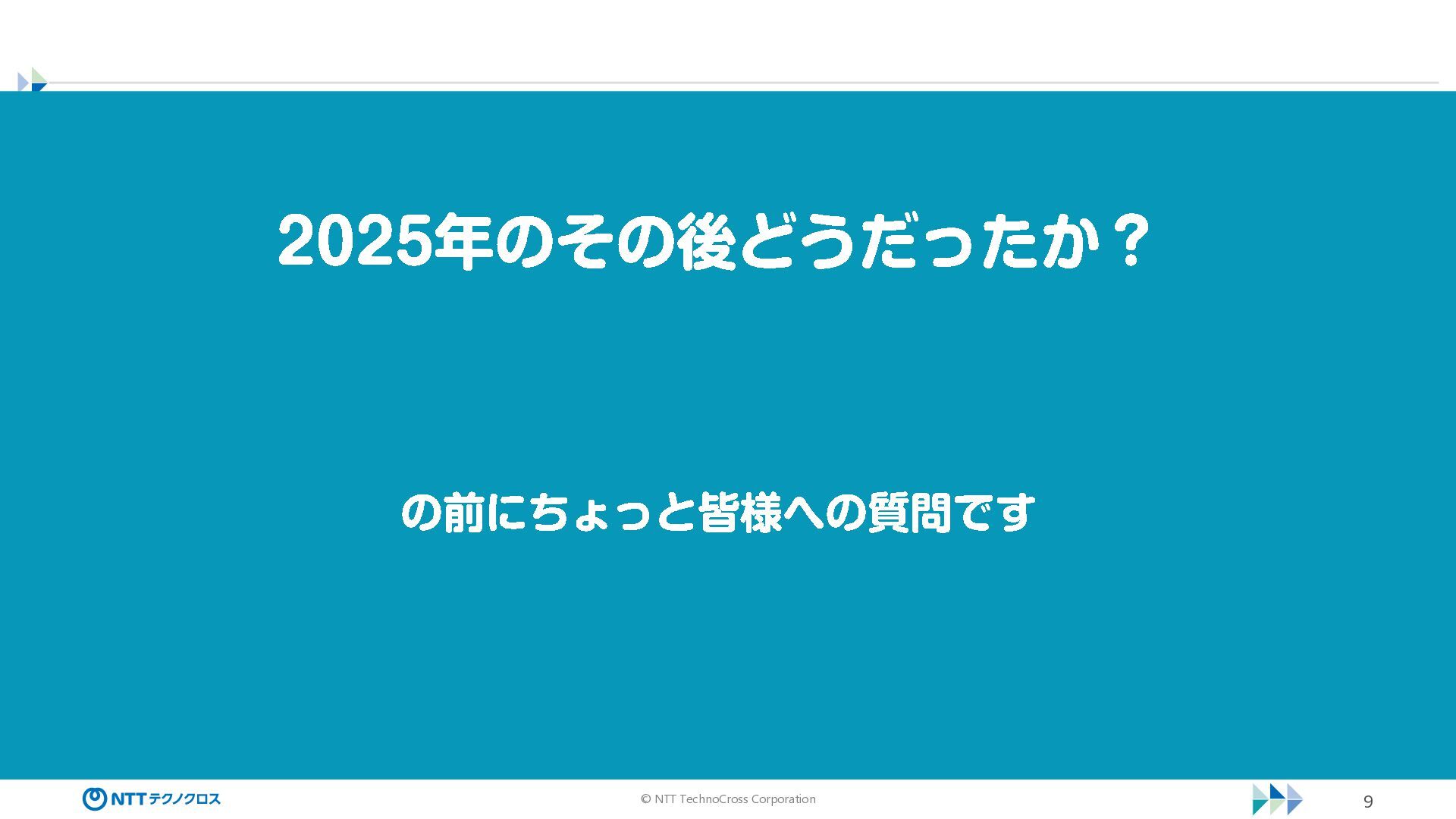 © NTT TechnoCross Corporation 9 2025 年のその後どうだったか? の前にちょっと皆様への質問です