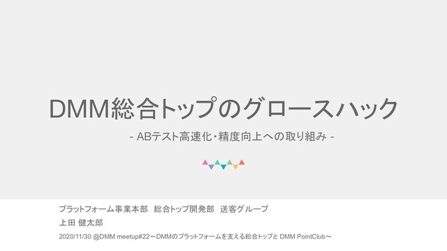 © DMM.com DMM総合トップのグロースハック - ABテスト高速化・精度向上への取り組み - プラットフォーム事業本部 総合トップ開発部 送客グループ 2020/11/30 @DMM meetup#22〜DMMのプラットフォームを支える総合トップと