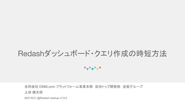 © DMM.com Redashダッシュボード・クエリ作成の時短方法 合同会社 DMM.com プラットフォーム事業本部 総合トップ開発部 送客グループ 2021/5/21 @Redash meetup v7.0.0