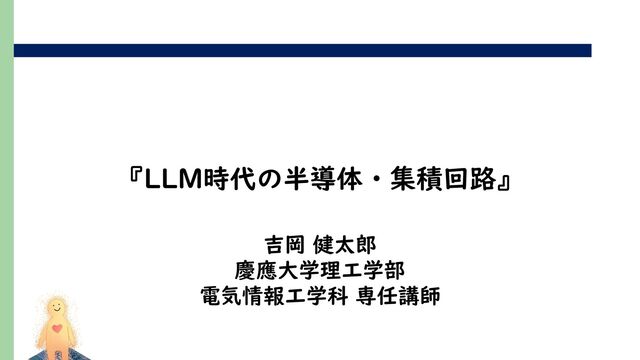 (世界大会) ◆Tier 2: CICC, ESSCIRC, ASSCC(地域選抜) ◆学会投稿にはシリコン試作が必須なのが特徴 ◼ IEEE EDA (Electronic Design Automation)系 ◆Tier 1: DAC, ICCAD(世界大会) ◆Tier 2: DATE, ASP-DAC(地域選抜) ◆元々は設計技術、ツールに関する学会だったが、 最近は回路設計自体についての論文も受け付けている ⚫ 回路はシミュレーションがほとんど 集積回路学会について Kentaro Yoshioka(40/17) IO/Register circuits 1088x78 AR-CIM CTRL WL/IN ADC Output Misc. 1270um 320um 60um Register wiring