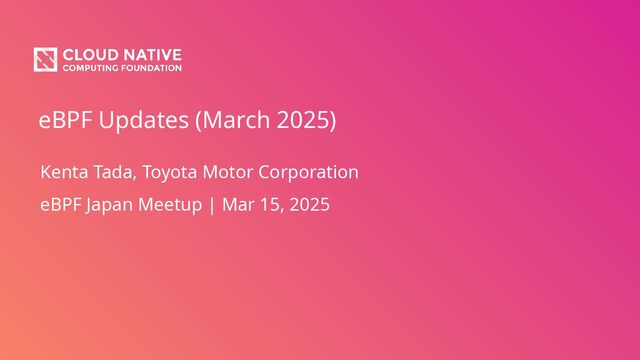 Corporation • Project Manager ◦ Develop both server-side and automotive systems ◦ Accelerate eBPF adoption across the company • Open Source Program Office in Toyota Recent Activities • CNCF End User Technical Advisory Board • KubeDay Japan 2024 Co-chair • CNCJ / eBPF Japan Community Organizer • The reviewer of the Japanese translation of the book "Learning eBPF" published by O'Reilly Japan @kenta_tada Kenta Tada