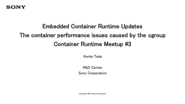 performance issues caused by the cgroup Container Runtime Meetup #3 Kenta Tada R&D Center Sony Corporation