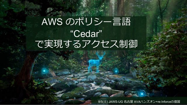 AWS のポリシー⾔語 “Cedar” で実現するアクセス制御 8/5(⼟) JAWS-UG 名古屋 AVAハンズオン+re:Inforceの復習