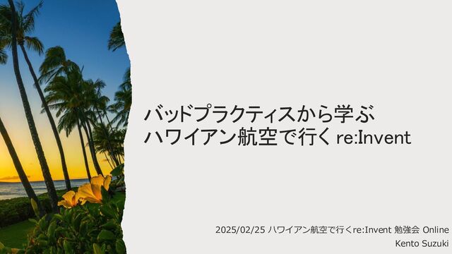 バッドプラクティスから学ぶ ハワイアン航空で行く re:Invent 2025/02/25 ハワイアン航空で行くre:Invent 勉強会 Online Kento Suzuki