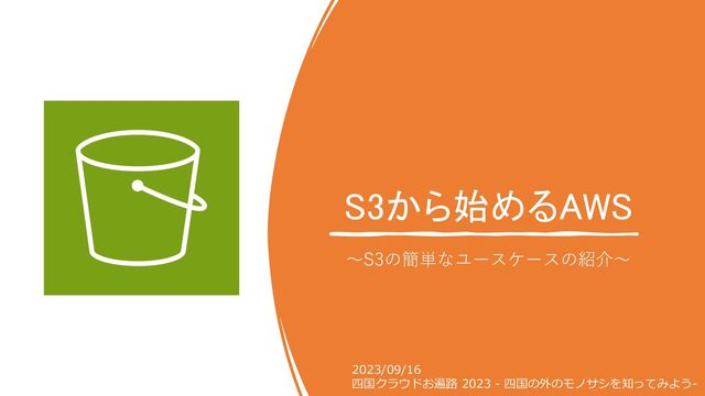 S3から始めるAWS 〜S3の簡単なユースケースの紹介〜 2023/09/16 四国クラウドお遍路 2023 - 四国の外のモノサシを知ってみよう-
