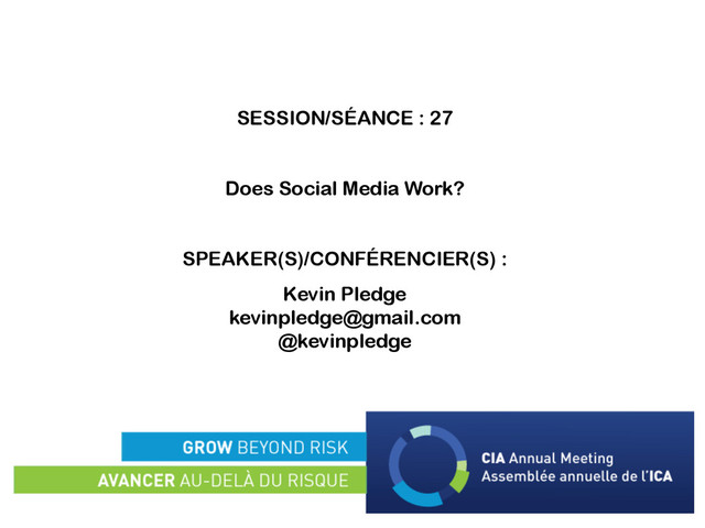 SESSION/SÉANCE : 27 Does Social Media Work? SPEAKER(S)/CONFÉRENCIER(S) : Kevin