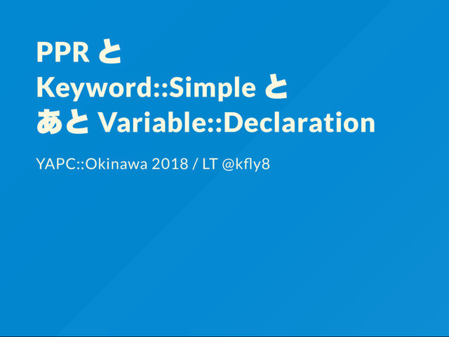 PPR と Keyword::Simple と あと Variable::Declaration YAPC::Okinawa 2018 / LT