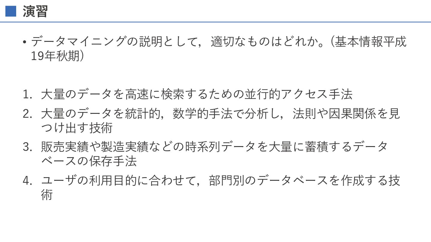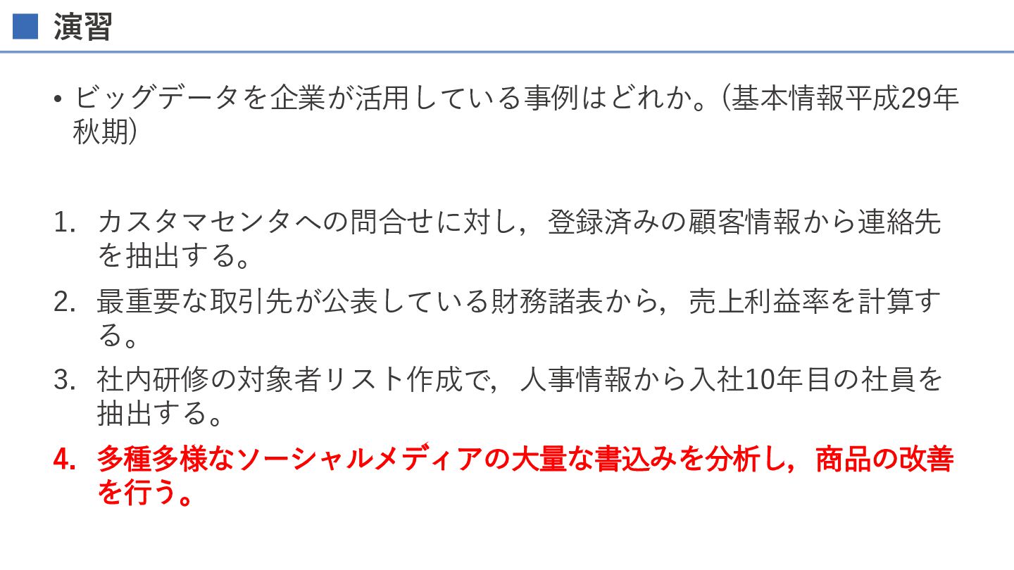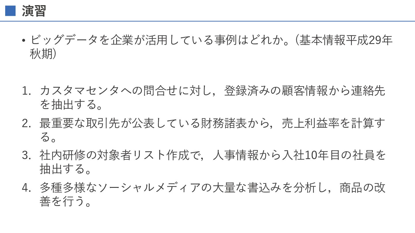 ハードウェア・産業構造 • 第4回 ソフトウェアの種類・ライセ ンス・特許 • 第5回 インターネットとビジネス • 第6回 コンピュータネットワークの 仕組み • 第7回 情報セキュリティ • 第8回 IoTとビッグデータ • 第9回 人工知能1 -人工知能時代の 到来- • 第10回 人工知能2 -人工知能を実現 するには- • 第11回 人工知能3 -人工知能の技術 - • 第12回 人工知能4 -人工知能を使い こなす上で必要な能力- • 第13回 人工知能5 -人工知能研究者 はどこに進めばよいのか- • 第14回 人工知能6 -プロンプトエン ジニアリング- • 第15回 人工知能7 -人工知能のリス ク-