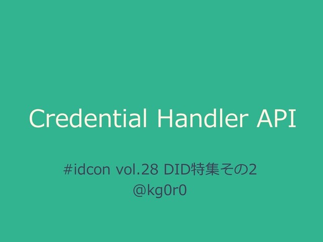 idcon vol.28の登壇資料です。Credential Handler APIについて説明しています。