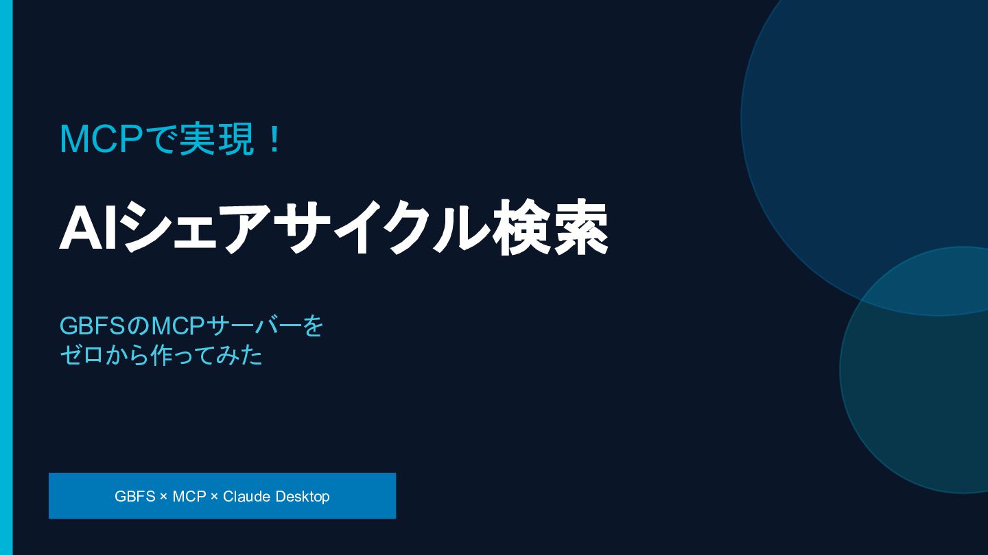 MCPで実現! AIシェアサイクル検索 GBFSのMCPサーバーを ゼロから作ってみた GBFS × MCP × Claude Desktop