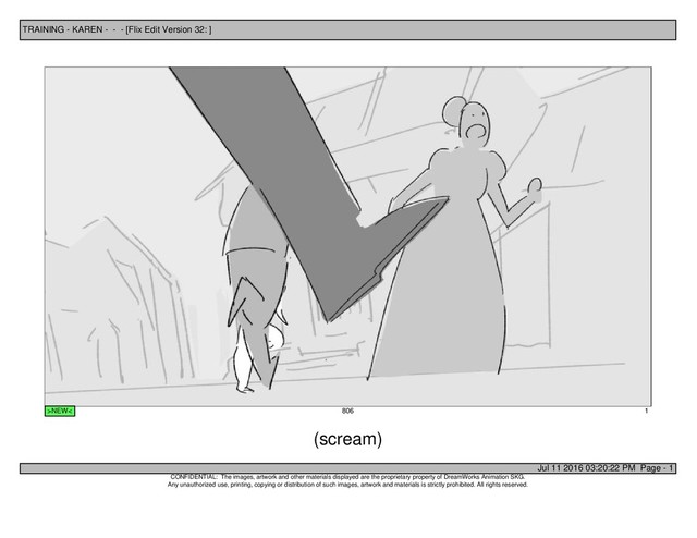 ] Jul 11 2016 03:20:22 PM Page - 1 CONFIDENTIAL: The images, artwork and other materials displayed are the proprietary property of DreamWorks Animation SKG. Any unauthorized use, printing, copying or distribution of such images, artwork and materials is strictly prohibited. All rights reserved. 806 >NEW< 1 (scream)