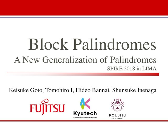 1. Block Palindromes A New Generalization of Palindromes SPIRE 2018 in
