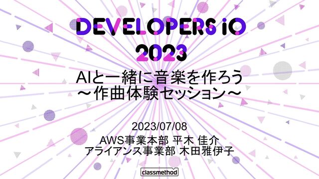 2023/07/08 AWS事業本部 平木 佳介 アライアンス事業部 木田雅伊子 AIと一緒に音楽を作ろう ~作曲体験セッション~
